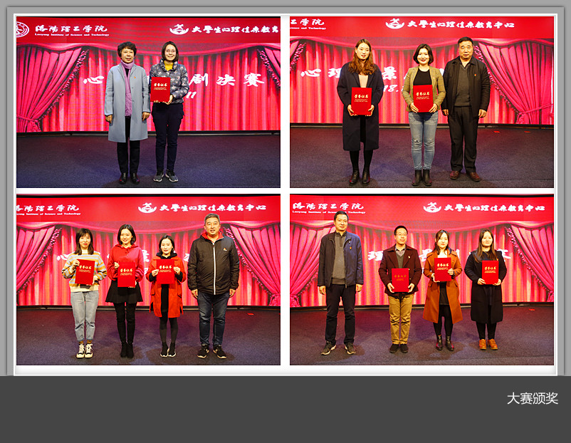经过前期初赛、复赛,共有10支参赛队伍脱颖而出闯进决赛。决赛中,选手们将感情融入到角色中,用欢笑、泪水演绎着大学生的心理成长历程。参赛作品围绕人性考验、舆论暴力、校园恋爱、校园贷、亲子关系等主题,真实再现了大学生的精神风貌,将现实生活与舞台表演创新结合,演绎了成长过程中的不同色彩,使大学生深刻体验自我及他人的生命故事,引导他们采用积极的方式化解心理矛盾,培养应对心理困惑的能力。经过激烈的角逐,最终,会计学院凭借其积极向上的主题设计和富有感染力的表演在比赛中拔得头筹。教育科学与音乐学院的《呐喊》、电气工程与自动化学院的《心门》荣获了二等奖,经济与管理学院的《幸福在身边》、材料科学与工程学院的《网恋启示录》、外国语学院的《爱与自信》获得了三等奖,人文与社会科学学院的《谁说我不在乎》、计算机与信息工程学院的《友情辣么暖》、环境工程与化学学院的《顿悟》、艺术设计学院的《以爱为名》获得优秀奖。