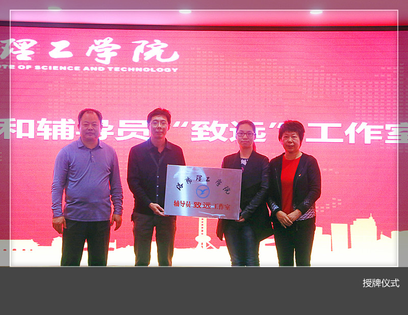 辅导员致远工作室负责人张正瑞就工作室成立的背景、准备情况、工作目标、工作内容等情况进行了介绍。学校党委副书记葛玻和省教育厅思想政治工作处处长李培俊共同为辅导员“致远”工作室授牌。