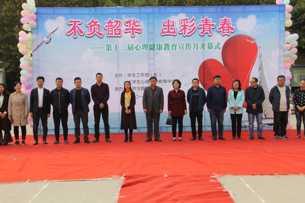 为了贯彻落实习近平总书记在全国高校思想政治教育工作会议精神,进一步推进我校心理健康教育工作创新性发展,增强大学生心理健康素质,提升大学生心理健康教育工作水平。10月17日,我校在王城校区镜月广场举办了第十二届心理健康教育宣传月开幕式。本次活动由学生工作部、大学生心理健康教育中心主办,经济与管理学院承办,我校学生工作部、各二级学院相关负责人,大学生心理健康教育中心老师、各学院心理辅导站站长及学生代表700余人参与了开幕式。
