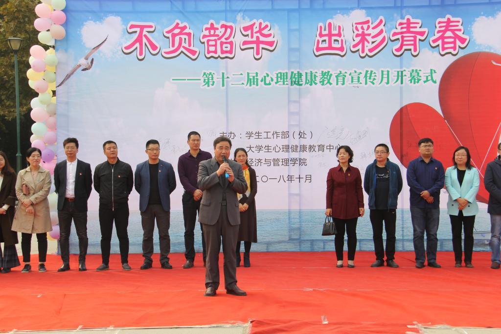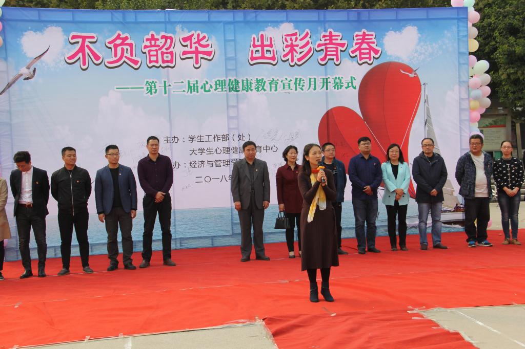 洋溢着青春正能量的开场舞之后,大学生心理健康教育中心主任白圣豪致开幕辞。她在讲话中表示,学校一直高度重视和支持大学生心理健康教育工作,希望同学们在今后的大学生活里学会关爱自我,以心为伴,与爱同行,放飞梦想,不负韶华。随后,学工部部长张宽亮宣布心理健康教育宣传月开幕,并宣布洛阳腾博官网诚信为本专业服务第十二届心理健康教育宣传月正式启动。