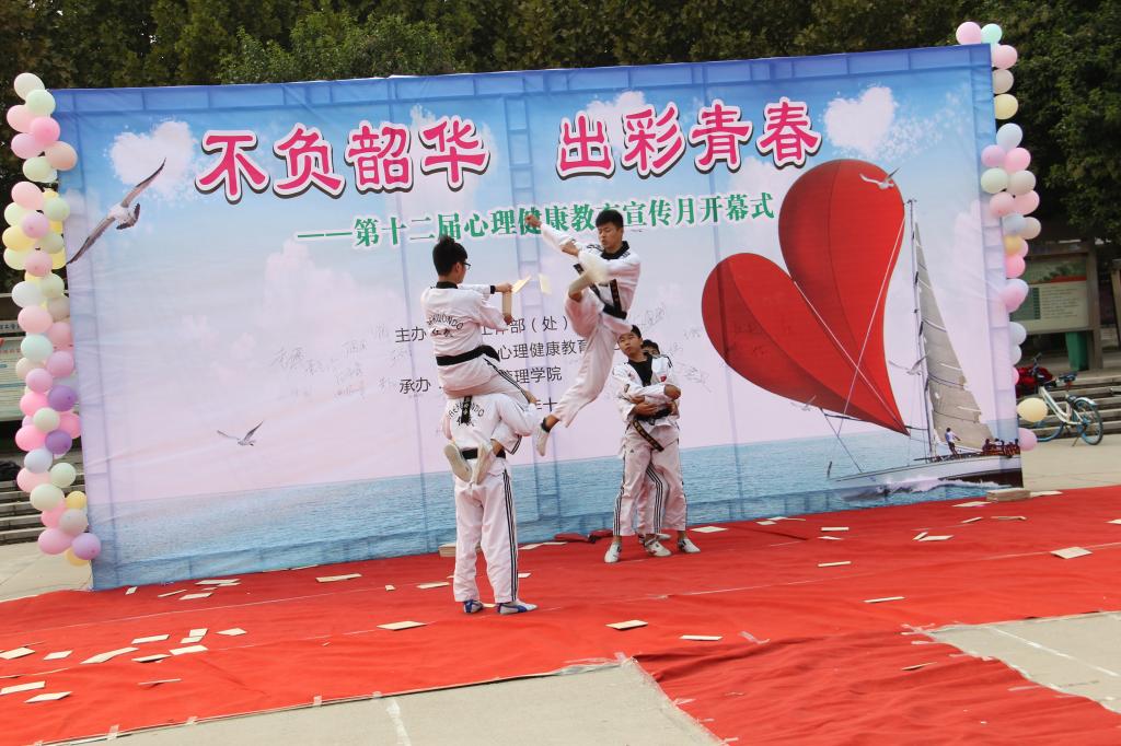 扩展阅读:举办大学生心理健康教育宣传月是洛阳腾博官网诚信为本专业服务学生工作的一项特色品牌活动,截止今年为止,我校已经连续成功举办了十一届,对促进大学生身心发展发挥了重要作用。本届心理健康教育宣传系列活动从学生实际需求出发,以“不负韶华 出彩青春”为主题,精心设计了正能量?21天习惯养成计划、“心灵天使”系列培训、走进“心”世界、师生素质拓展等九项精彩活动,通过班级宣传、横幅宣传以及心理健康知识宣传等方式,调动广大学生的积极性。这些活动对培育大学生积极心态,提高大学生心理素质、塑造健全人格,营造和谐的校园氛围起到了促进作用,更加推进了我校心理健康教育工作更快、更好地发展。