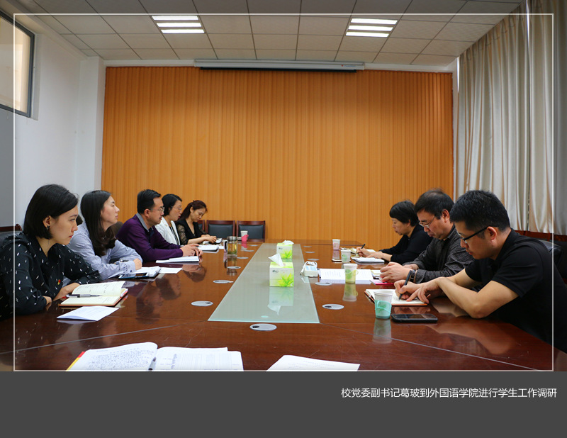为进一步加强学生工作,助力“示范校”建设,5月23日,校党委副书记葛玻带领学生工作处、就业指导中心负责人一行到外国语学院对学生工作进行调研。外国语学院负责人及相关学生工作人员参加了此次调研。