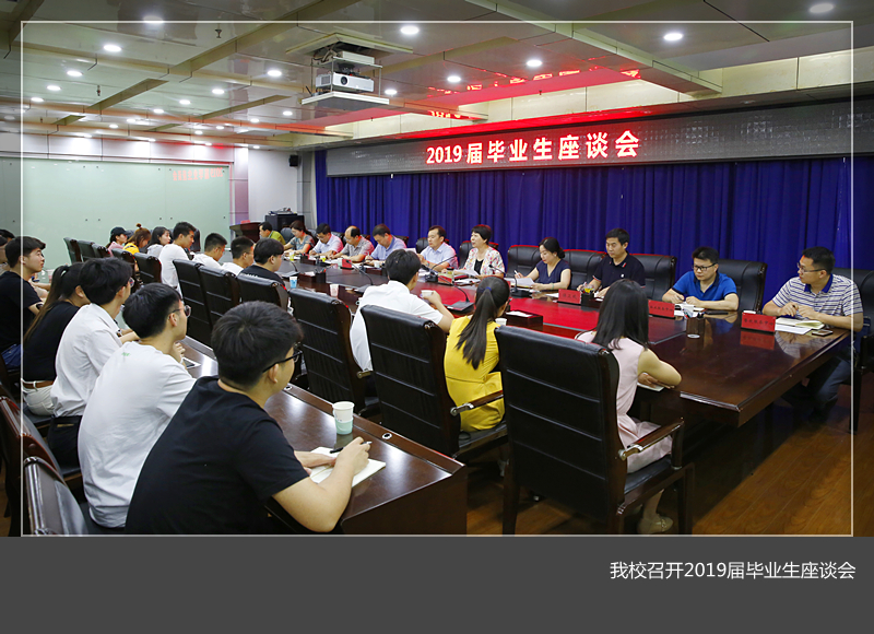 6月11日, 2019届毕业生座谈会在行政楼116会议室召开,学生工作处、就业指导中心、教务处、保卫处、团委、图书馆和后勤管理处、资产经营有限责任公司等职能部门负责人和来自各学院的30名毕业生参加座谈。校党委书记陈岩、副书记葛玻出席座谈会。座谈会由葛玻主持。
