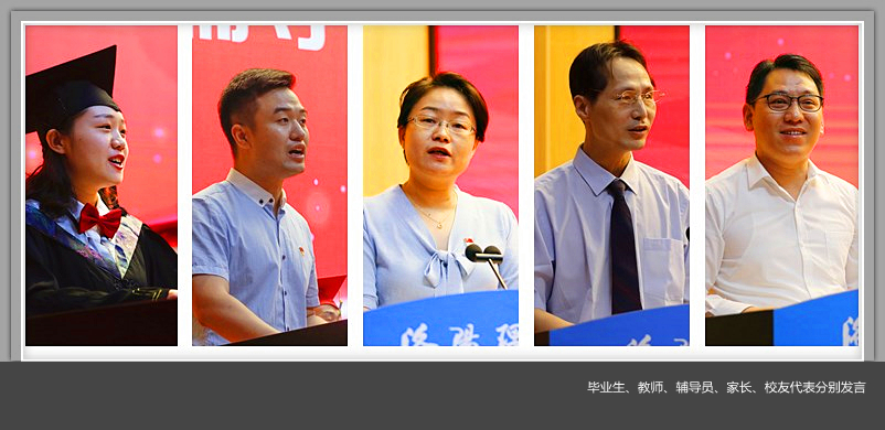 马克思主义学院申艳红代表全校教师对同学们顺利完成学业和踏上新的人生征程表示祝贺,勉励同学们在奋斗中不忘初心、志存高远,在奋斗中担当责任、牢记使命,在奋斗中坚持自我、超越自我。希望大家不管经历多大的磨难和打击,都要永远对这个世界充满信心,都要永远热爱生活。机械工程学院辅导员晁源代表学生工作者回忆了与学生相处成长的经历,为即将走上各个岗位的毕业生送上三条建议,顺利实现角色转换,在实践中锻炼成长,坚持青春的梦想。
