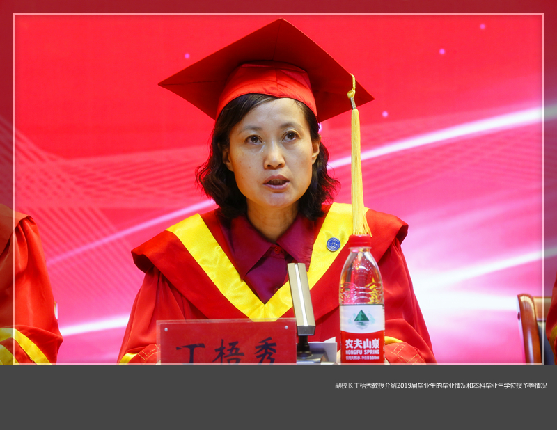 副校长丁梧秀教授介绍了我校2019届毕业生的毕业情况和本科毕业生学位授予情况、考取研究生情况。2019届我校应届毕业8515名学生。本科生共计5799名,其中5590名学生在规定学制内修完本专业培养方案规定的全部教学环节,成绩合格,取得规定的毕业学分,准予毕业,颁发毕业证书,本科生的毕业率为96.4%。经各学院学位评定分委员会进行学士学位授予资格审查,报校学位评定委员会审议批准,授予2019届全日制本科毕业生张丽梅等5506名同学学士学位,学位授予率为94.95%。另有204名同学修读了“双学位”教育专业并获得了辅修学士学位;我校2019届2716名专科毕业生中有2621名学生在三年内修完培养方案规定的全部课程及实践性环节,成绩合格,取得培养方案规定的各类学分,准予毕业,发给毕业证书,毕业率为96.5%,选择报名专升本考试继续深造的专科毕业生共计2025人,占2019届专科毕业生的比例为74.6%。2019年我校共计考取全国200余所高校研究生686人。