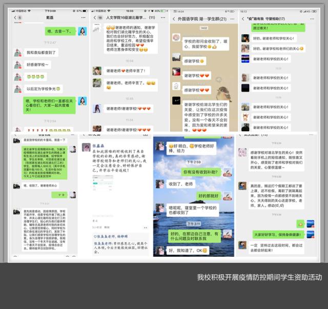 立足抗击疫情,有效资助育人。根据疫情发展形势,各学院充分利用新媒体,通过网络视频会议、微博、微信等方式,向学生家庭宣讲党和国家的资助政策,传达学校资助帮扶措施,传递学校的关爱和温暖,引导学生在疫情防控的特殊时期,克服困难,强健体魄,努力学习,用实际行动支援国家抗击疫情工作。