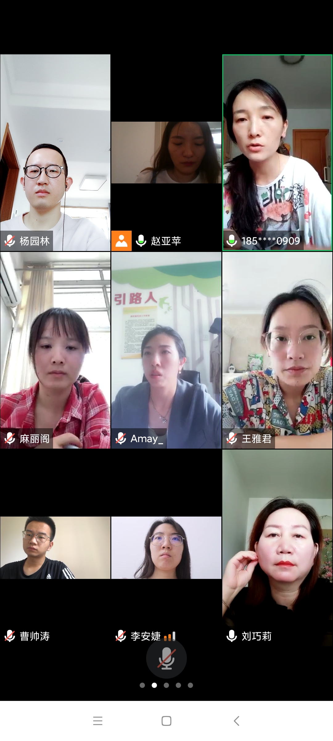 然后,白圣豪老师传达了学校关于秋季延迟返校以及线上教学的相关文件精神,带领全部任课老师总结了2020年线上教学的经验与方法,针对如何在新生中顺利开展心理第一堂课、营造良好的课堂氛围、构建学生与学生、学生与老师、学生与学校之间的密切联系进行了深入讨论,她希望全体授课教师在常态化疫情防控期间积极落实“停课不停教、停课不停学”以及“把灾难当教材,与祖国共成长”的工作要求,鼓励各位老师结合心理健康课的特点,利用团体心理活动创设良好教学情境,充分发挥在线直播教学平台的优势,主动创新,不断提高教学效果。