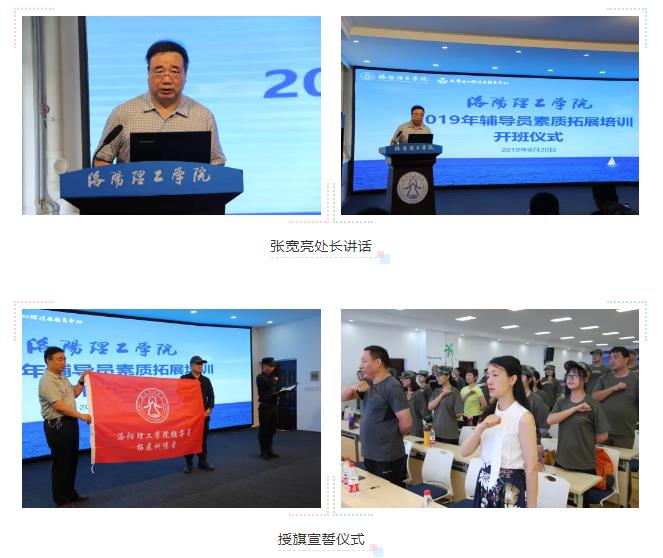 随后,全体参训辅导员老师参加了授旗仪式并集体宣誓。主教练进行前瞻破冰,讲述了拓展训练的起源、背景和意义,强调了营地注意事项及培训制度,并宣布我校2019年辅导员素质拓展培训班顺利开营。