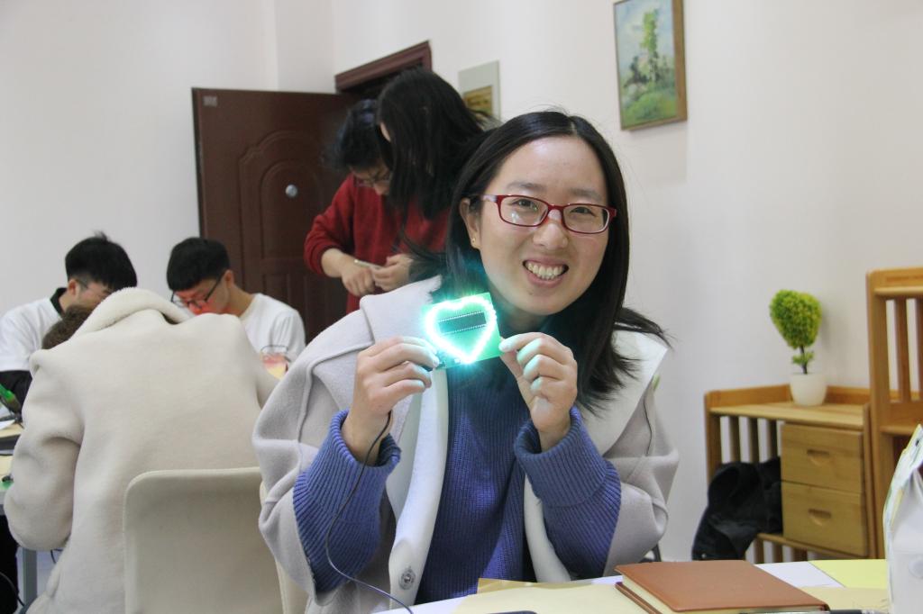 参与活动的老师们通过自己焊接字模,在体验心形灯制作的乐趣中不但放松了身心、释放了压力,还了解了家电维修小组的科研成果,同时感受到了心理健康与科技创新的精彩结合。